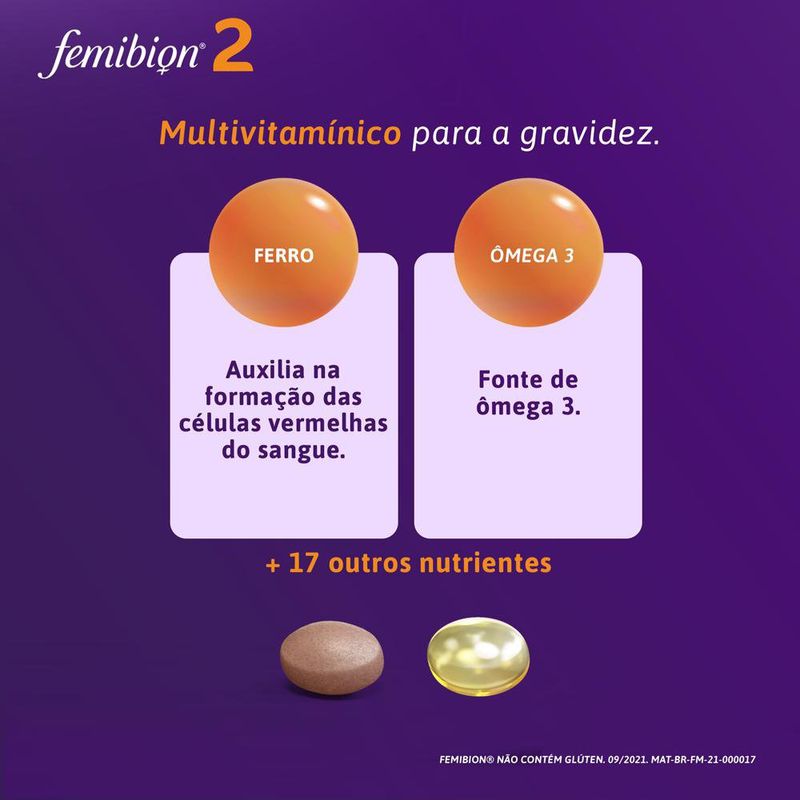 Femibion 2 é um suplemento multivitamínico desenvolvido especialmente para gestantes, recomendado para uso a partir da 13ª semana de gravidez. Contém uma combinação exclusiva de nutrientes essenciais como metilfolato, colina e ômega 3, que auxiliam no suporte nutricional da mãe e no desenvolvimento saudável do bebê.
