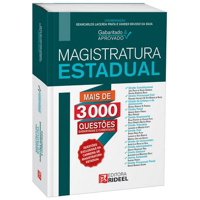 A Editora Rideel apresenta ao mundo dos concurseiros mais uma coleção para facilitar os estudos e o treino diário para passar no concurso de sua escolha. A Coleção Gabaritado E Aprovado busca, em linguagem simples e objetiva, trazer obras de questões comentadas com provas específicas de cada carreira, permitindo o aprimoramento do estudo antes da realização da prova. Organizado por matérias, você estabelece seu planejamento de estudo; e assim, alcançará um grande aproveitamento e, consequentemente, um melhor resultado. Preparar-se exige estratégia, por isso Magistratura Estadual inclui questões de diversos concursos realizados para essa carreira. O conteúdo traz, além da justificativa apresentada pelos autores fundamentando a resposta do gabarito oficial por meio de legislação, doutrina e jurisprudências, um item de Preste Atenção à parte, em que pode ser acrescido pelo autor dicas sobre a questão e indicativos para não cair em pegadinhas. Com mais de 3000 questões de concursos dessa carreira, acredite, passar é possível!