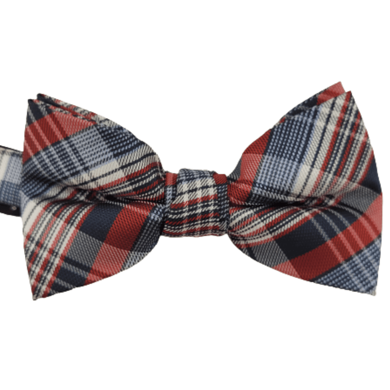 Gravata Borboleta Xadrez Poliéster Azul, Vermelho e Branco