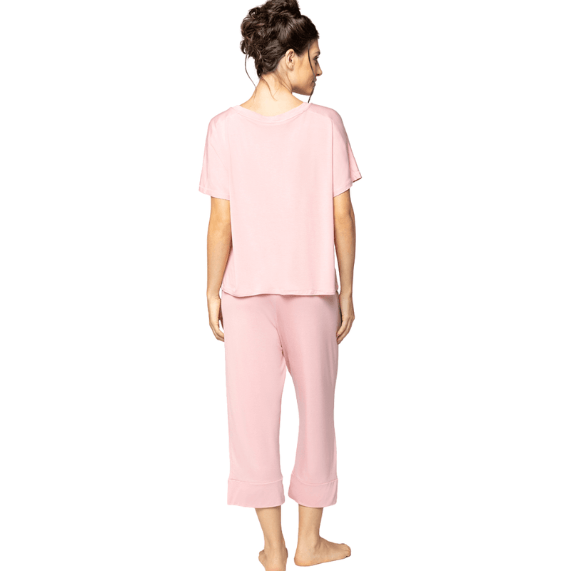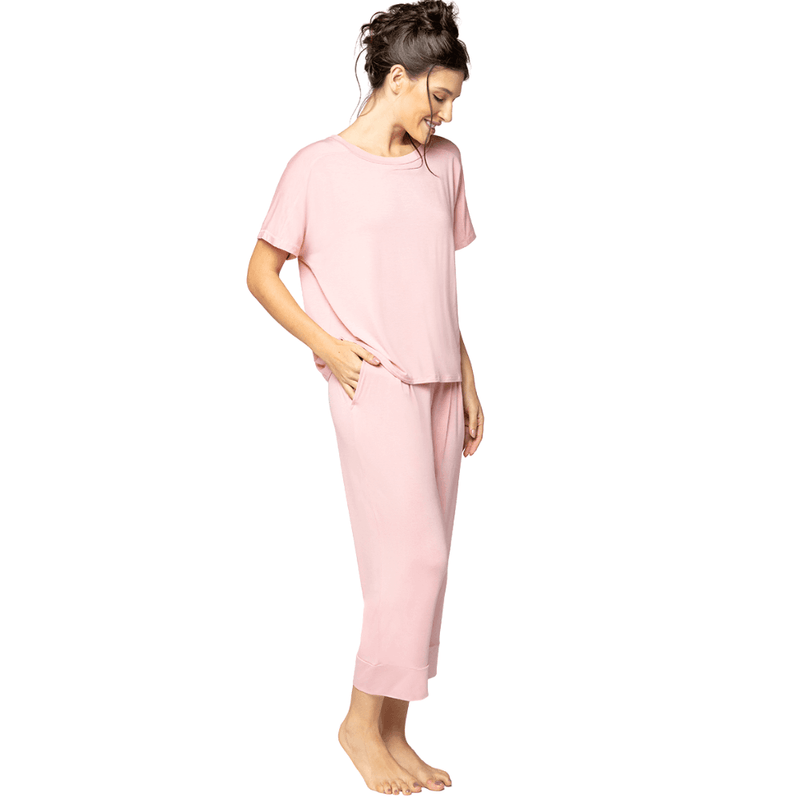Calça capri com comprimento abaixo do joelho, prática e moderna.