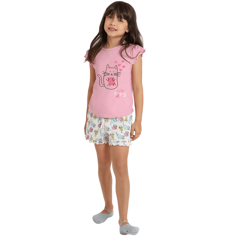 Pijama Infantil Short Doll Cute Cats Lupo 22591-001