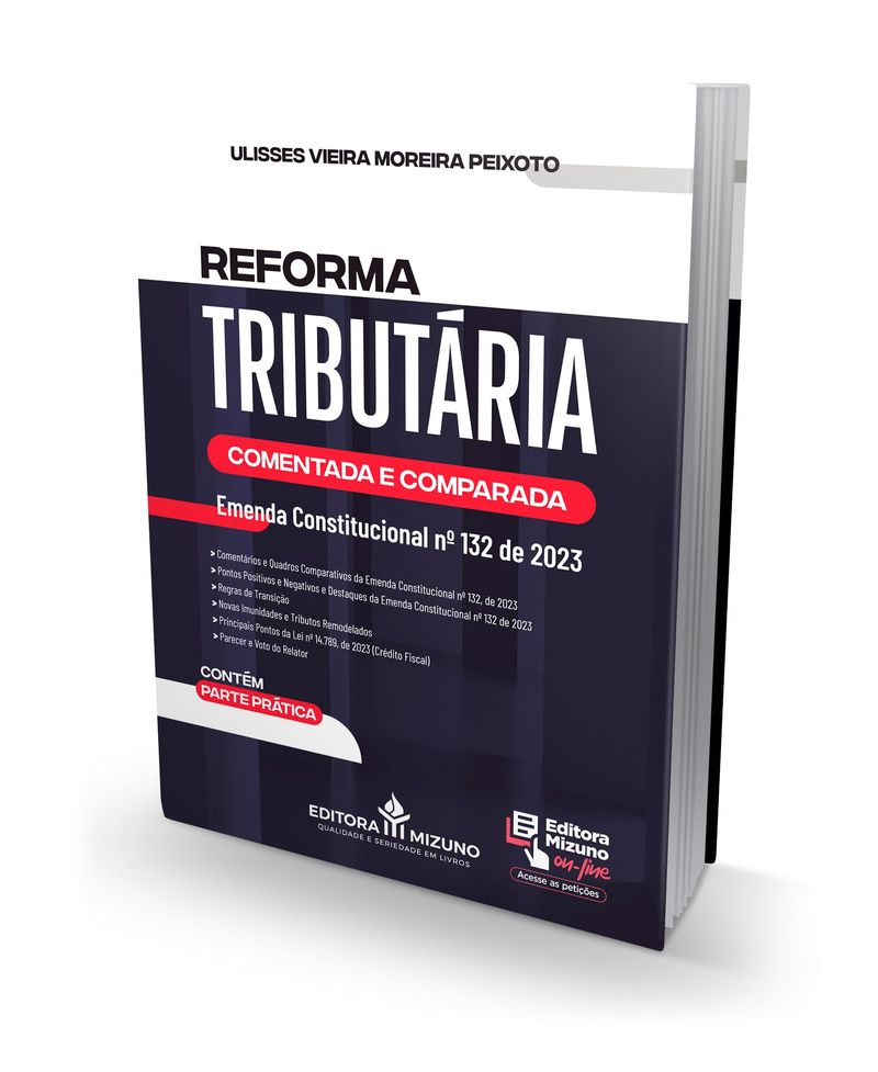 A obra em destaque trata do estudo da Emenda Constitucional nº 132 de 2023, referente à Reforma Tributária, sendo que esta é considerada por muitos como um marco importante para o Brasil e tem o potencial de impulsionar o crescimento econômico. No entanto, ainda há desafios a serem enfrentados e detalhes a serem definidos nos próximos anos.O livro em questão carrega notas introdutórias da Reforma Tributária descrevendo pontos positivos e negativos; destaques; regras de transição; novas imunidades e tributos remodelados.Além disso, o autor comentou artigo por artigo da Emenda Constitucional nº 132 de 2023, inserindo quadros comparativos da atual legislação oriunda da Reforma Tributária com a antiga legislação.A parte prática, carrega os seguintes modelos: Petição para Isenção de Impostos com base na EC nº 132 de 2023; Petição para Revisão de Impostos com base na EC nº 132 de 2023; Requerimento para Consulta Pública sobre a EC nº 132 de 2023; Requerimento de Concessão de Incentivos Regionais; Requerimento de Reconhecimento de Imunidade Tributária; Requerimento de Solicitação de Isenção de Pagamento de IPVA; Requerimento para Convocação de Ministro de Estado; Deliberação do Comitê Gestor do IBS; Requerimento de Imunidade Religiosa; Requerimento de Benefício Fiscal.