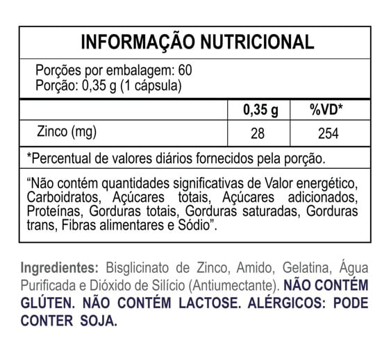 O Zinco é um mineral importante que atua na síntese de proteínas e possui importante participação na recuperação muscular. Auxilia na melhora do sistema imunológico fortalecendo as defesas do organismo e ajuda a reduzir o depósito do colesterol das artérias. Ingerir 1 cápsula ao dia, de preferência às refeições.
